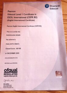 Вітаємо студентку Ренер Роксолану з успішним складанням міжнародного іспиту Pearson English International Certificate (PEIC)!